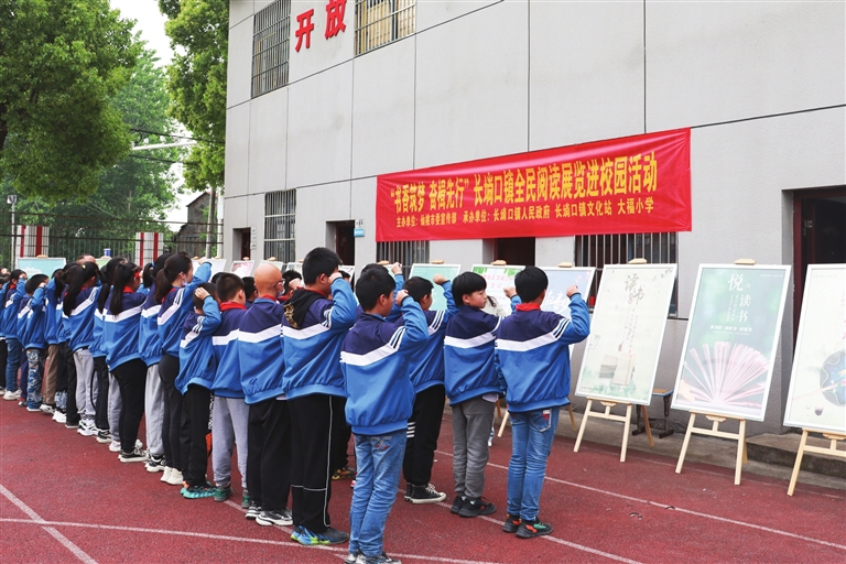 近日,长埫口镇新时代文明实践所、关工委、文化站联合大福小学开展“书香筑梦 奋楫先行”全民阅读系列活动。图为大福小学学生集体进行“绿色阅读,文明上网”宣誓。